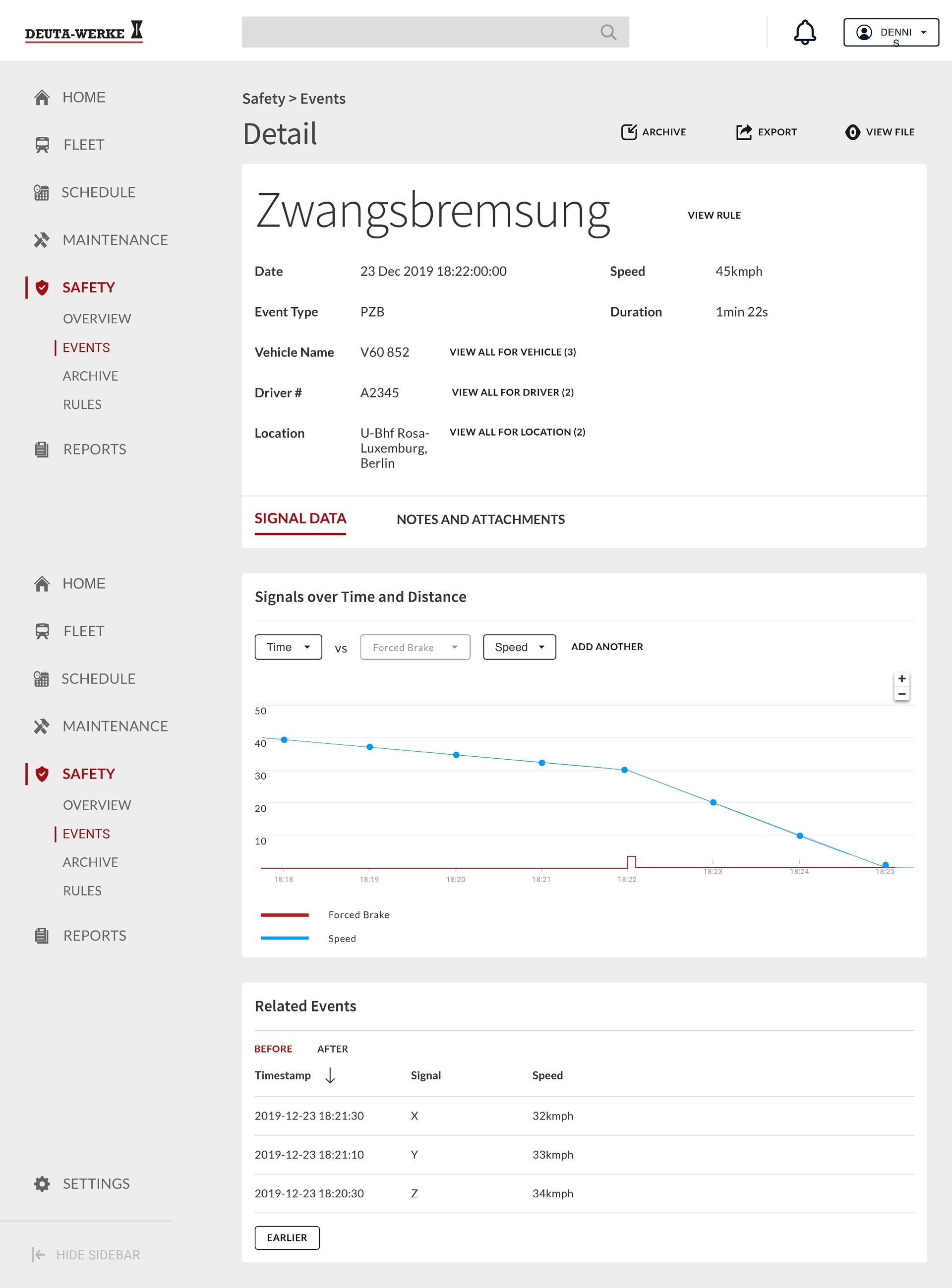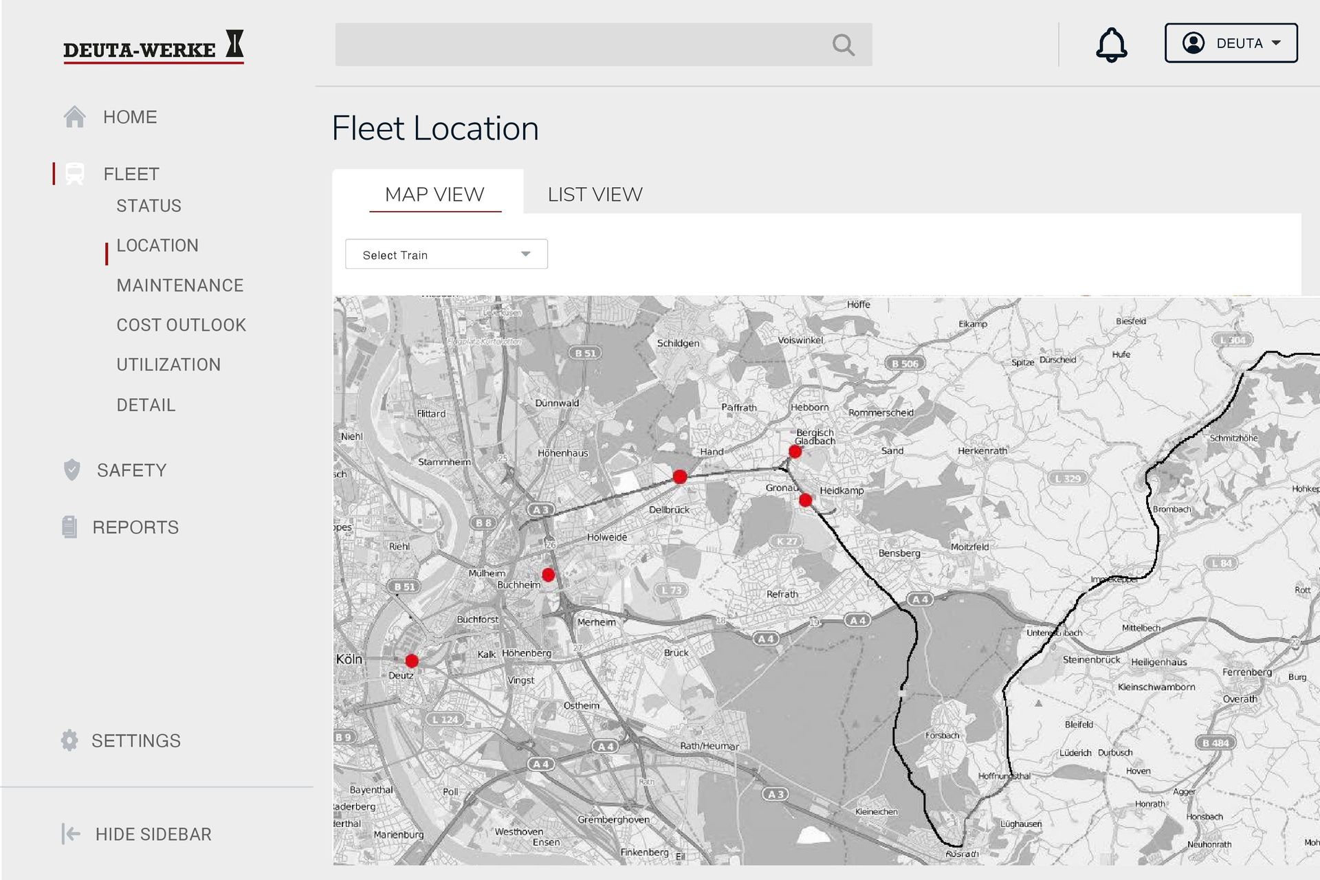 Your evaluation - and fleet data at a glance The goal of DEUTA RedCloud® is to provide a fleet-level view by aggregating data from multiple trains and subsystems. This would provide insights into train use, operations and maintenance activities, which can improve uptime, reliability, safety and reduce cost. The innovative user interface of the DEUTA RedCloud® presents all data clearly at a glance: speed, analogue and digital tracks and train control data are displayed at the same time.