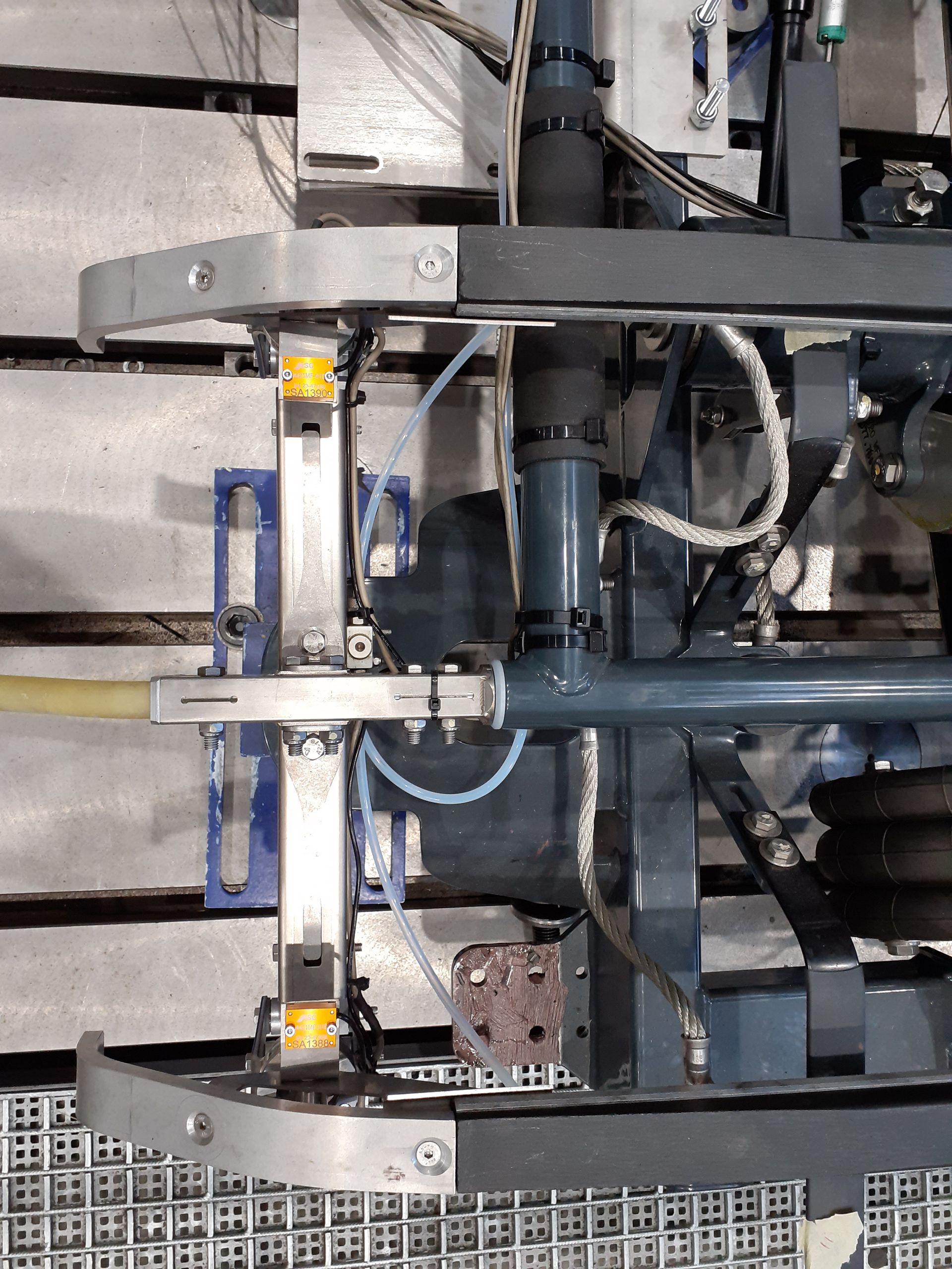 In these pantograph test series, the sensors are installed between the pantograph body and the contact strip. The latter is in direct contact with the catenary and represents, therefore, a high voltage area.