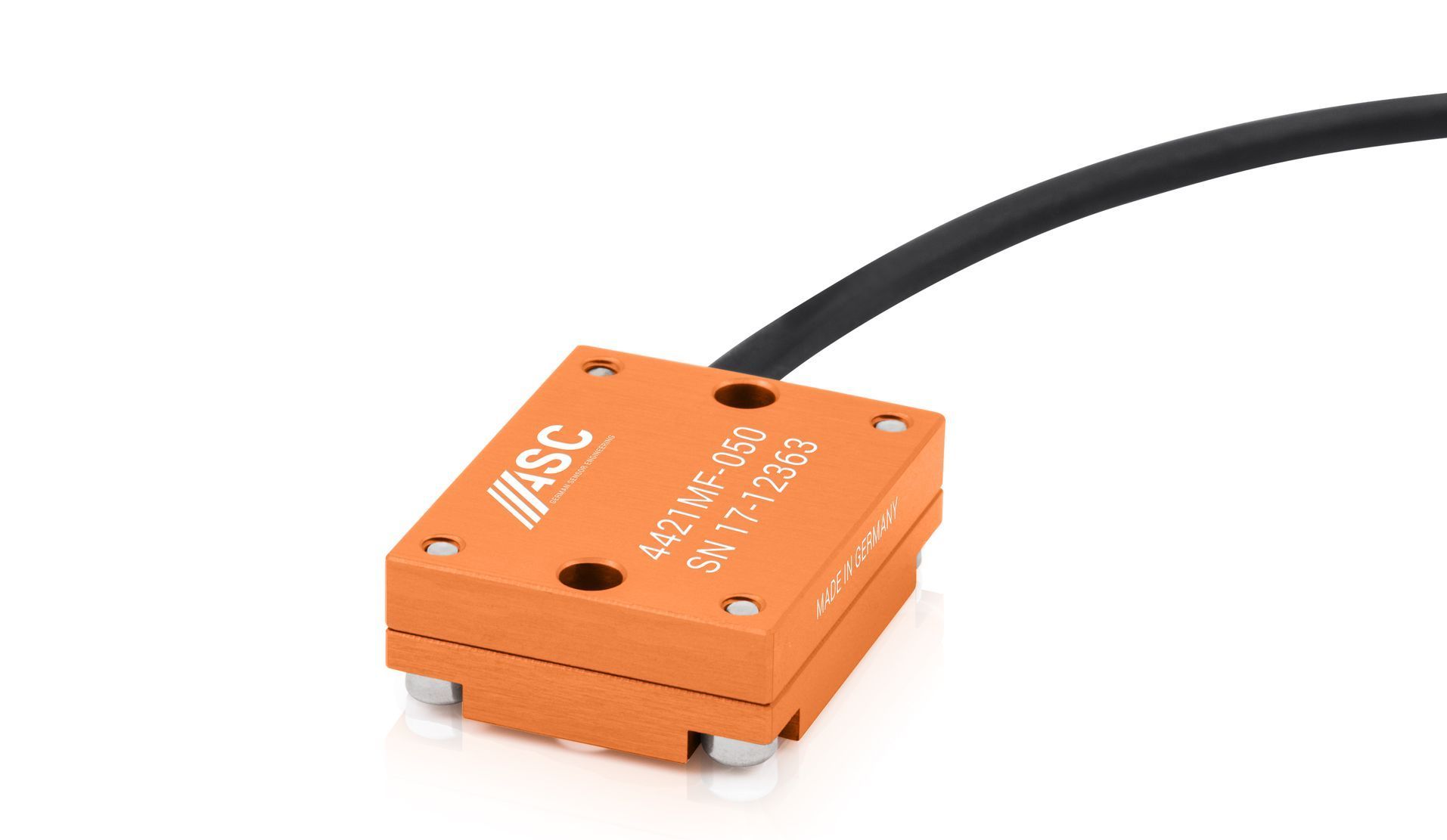 ASC 4421MF accelerometer used in pantograph testing at 350+ km/h (© ASC Sensors)