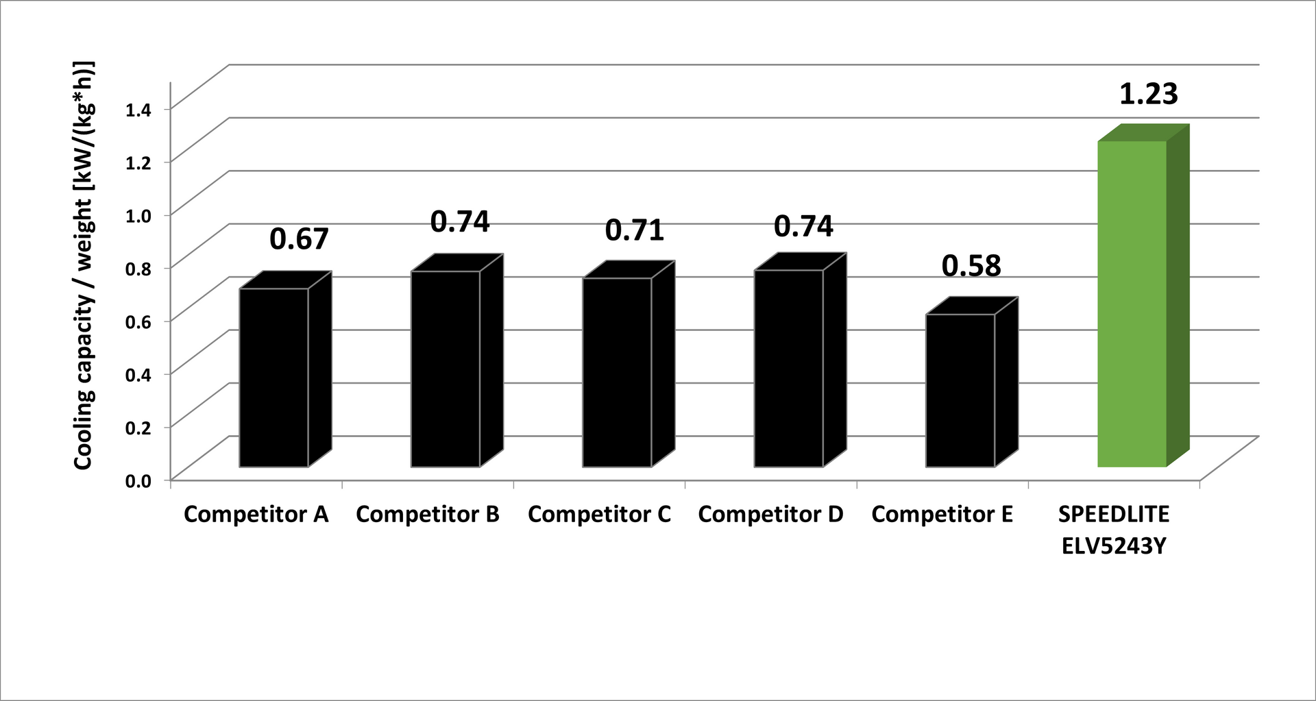 Comparison of the BITZER SPEEDLITE ELV52 with other compressors with regard to the cooling capacity to weight ratio