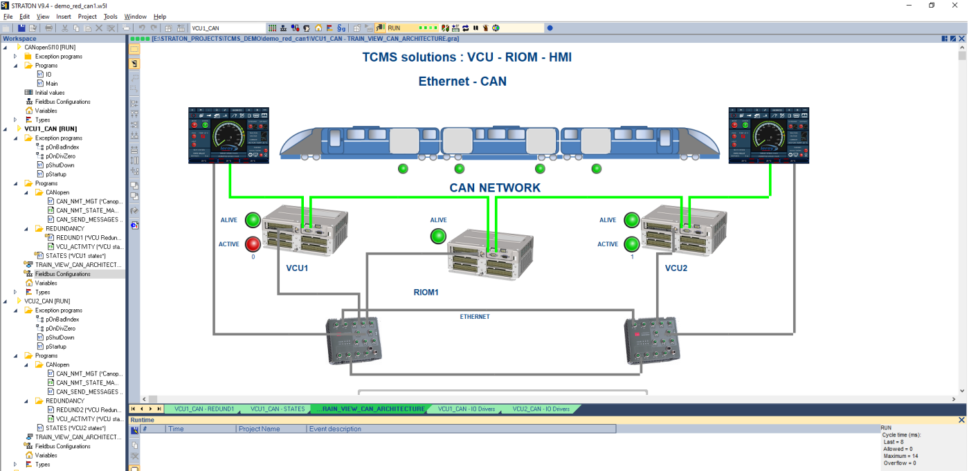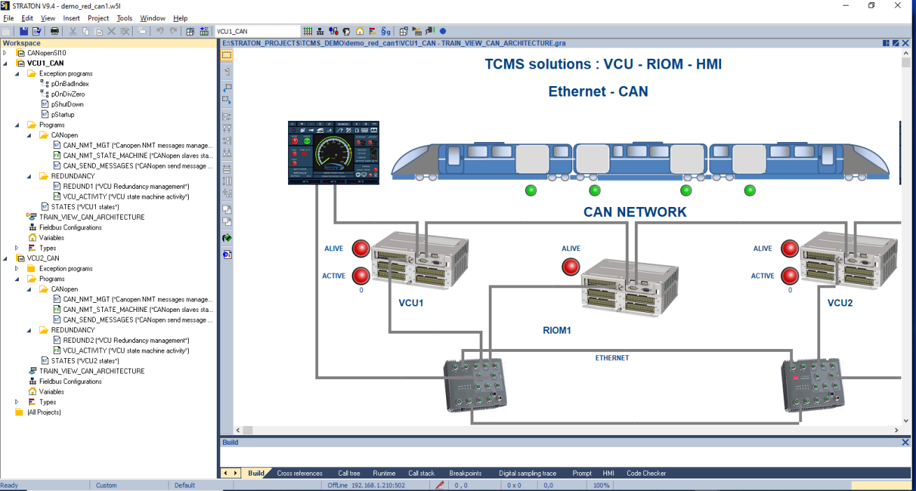 The Host PC workbench used for programming the VCU is “STRATON” from Copa-Data: its main features are listed below: