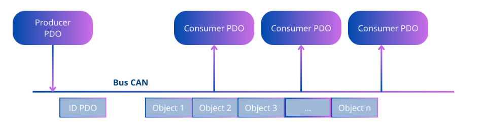 CANopen is a high-level application layer (layer 7 of the OSI model) which implements the mechanisms necessary for monitoring a network, periodic (PDO) and non-periodic (SDO) messages. CANopen thus authorizes Master/Slave type communications but also Producer/Consumer type communications, all simultaneously!