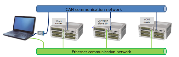 - CANopen communication: between VCU1 & VCU2 & CANopen slave 10 ;