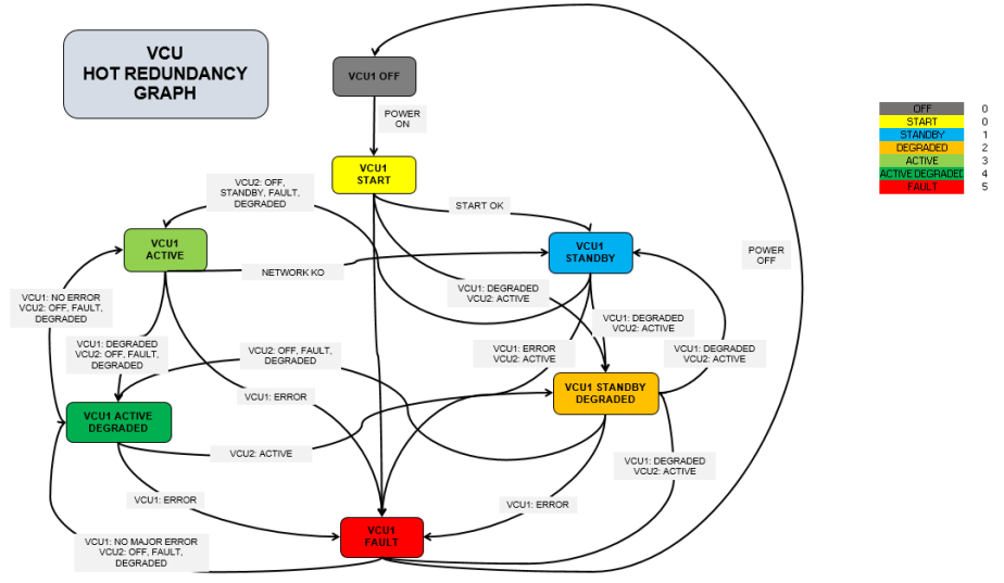 - VCU CANopen master redundancy through CAN network: VCU1 & VCU2 ;