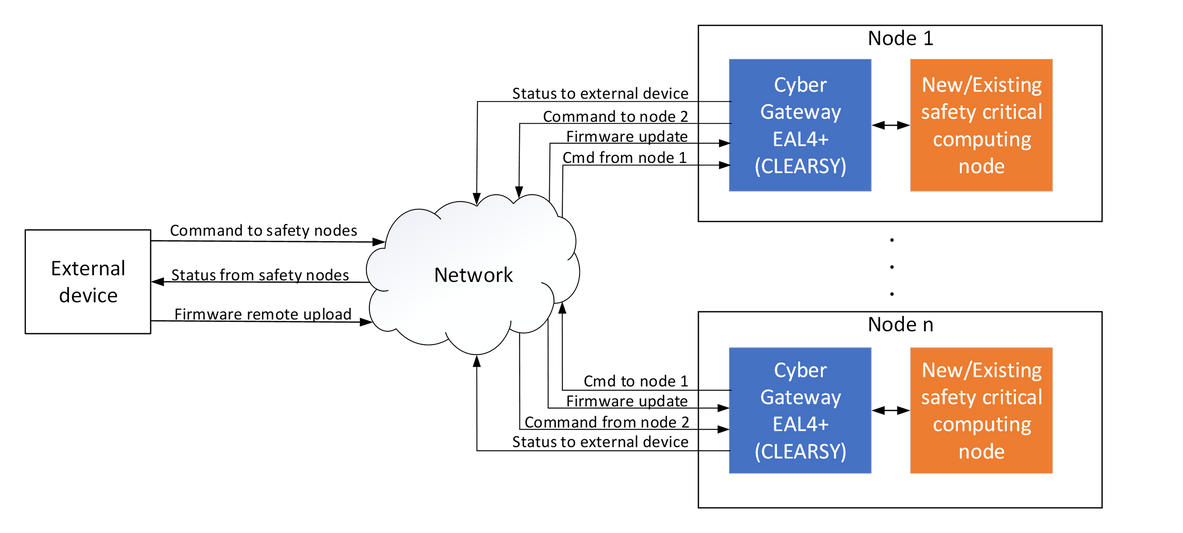 This innovative work ensures that the operating system executed on the gateway will always behave as expected whatever incoming packets are received on the network link. Thanks to this architecture the cybersecurity gateway is acting as a firewall and thus isolating the CLEARSY Safety Platform (vital-computer) from external threat.