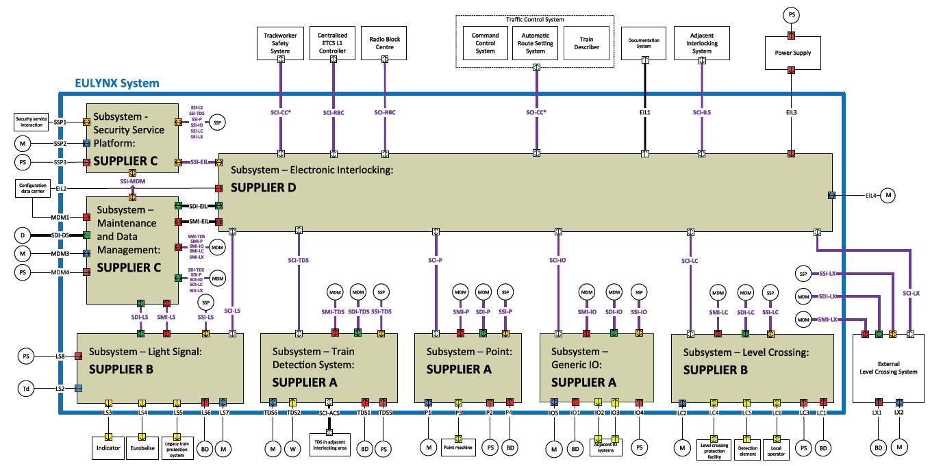 EULYNX is a standardised framework designed to enhance interoperability and integration within railway signalling and control systems. It provides a set of standardised interfaces and protocols that facilitate seamless communication and data exchange between components and systems. For instance, thanks to EULYNX, WOCs enable greater interoperability between components and reduce vendor lock-in, which in turn promotes product diversity and grants the operator more choice in procuring components according to specific project requirements, irrespective of the manufacturer.