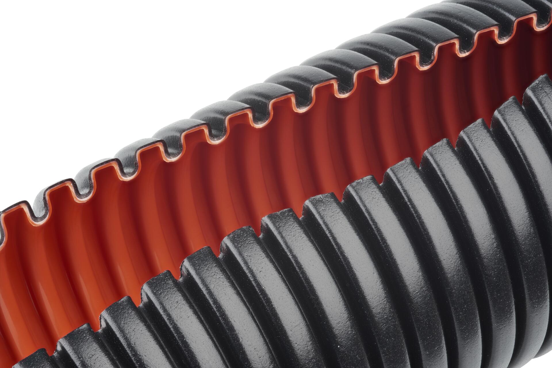 The ROHRflex corrugated plastic tubings available so far consist of a polyamide layer. The new generation now features an additional inner polyamide layer which comes along with a number of advantages. The design of this multi-layer tubing could be converted into a physical product thanks to an innovative production technology, realized with a newly acquired multi-layer production line.